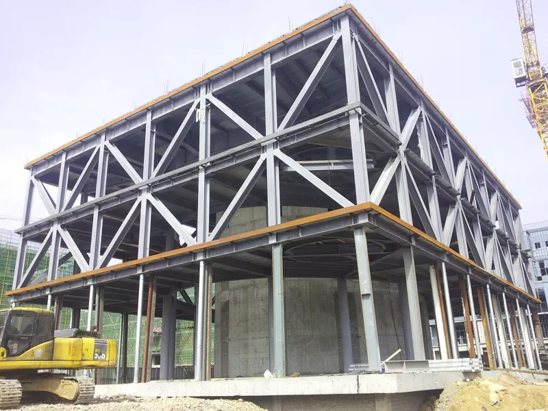 په عمده ډول د فولادو کالمونو، سټیل بیمونه، د فولادو تختې، نور.، کوم چې د خط کولو، او نورو له لارې په چوکاټ جوړښت کې راټول شوي دي.