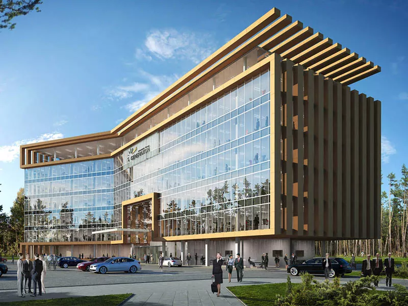 د سټیل جوړښت سره د عصري دفتر بلاکونه
