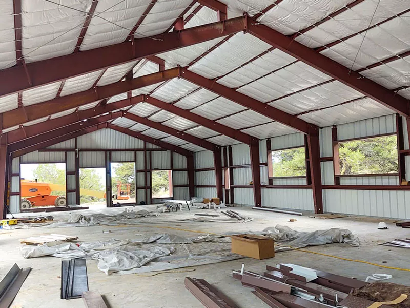 چت او خارجي کلاډینګ:یوځل چې د فولادو چوکاټ بشپړ شي، د چت کولو سیسټم نصب شوی، معمولا د انحصار فلزي پینلونو یا واحد ply pebrane موادو مشتمل دي. بهرنی دیوالونه، که په ډیزاین کې شامل وي، د موادو په کارولو سره د فلزي پینل یا خښتو په کارولو سره نصب شوي.