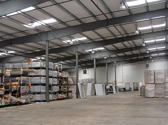 د داخلي نږدې او سیسټمونو:د ګودام داخلي د ټاکل شوي اړتیاو سره سم پای ته رسیږي، پشمول د فرش کولو، ر lighting ا کول، وینټیلیشن او د اور ساتنې، او د اور ساتنې سیسټمونه. تخصصي تجهیزات، لکه د ذخیره کونکي ریکونه او میزانینز، ممکن د عملیاتي موثریت مطلوب کولو لپاره هم نصب شي.