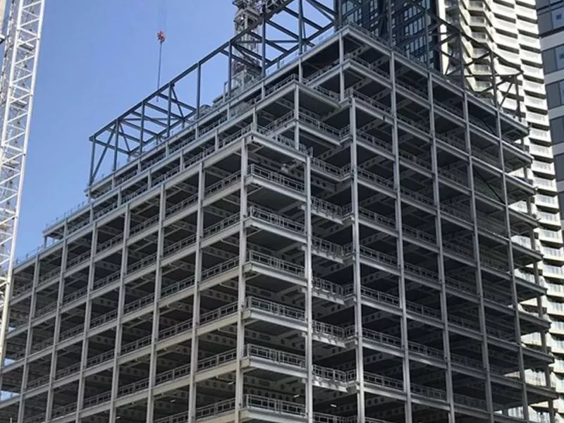 سربیره پردې، د فولادو چوکاټ رغونه خورا لوړه صنعتي ده. د سټیل اجزا په فابریکو کې مطابق وړاندې کیدی شي او بیا د نصبولو لپاره سایټ ته لیږدول شوي، د پام وړ د رغونې وخت او موثریت ښه کولو لپاره د پام وړ کمول. دا د دودیز ساختماني میتودونو په پرتله د لږ زیان او چاپیریال اغیز په پایله کې هم پایله لري.