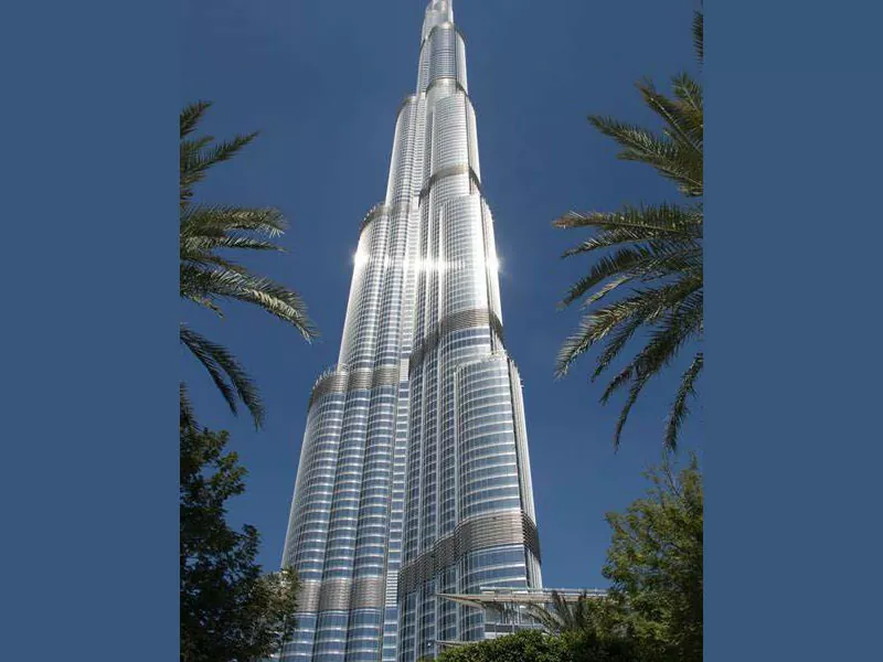 inter په دوبۍ کې برج خلیفه، اماراتو د نړۍ ترټولو لوړه ودانۍ ده چې د فولادو کانکریټ هایبرډ هایډ چوکاټ سره. دا په 163 پوړونو او له 828 meters مترو څخه لوړوالی لري.